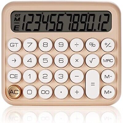 12-Digit Mechanical Calculator – Cute Beige Design, Big Buttons, Everyday Use