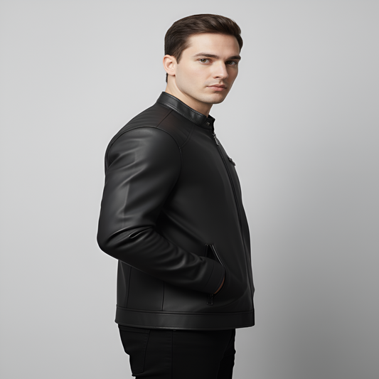 Men’s Black Leather Zipper Jacket – Classic Swiss Design & Durable Finish