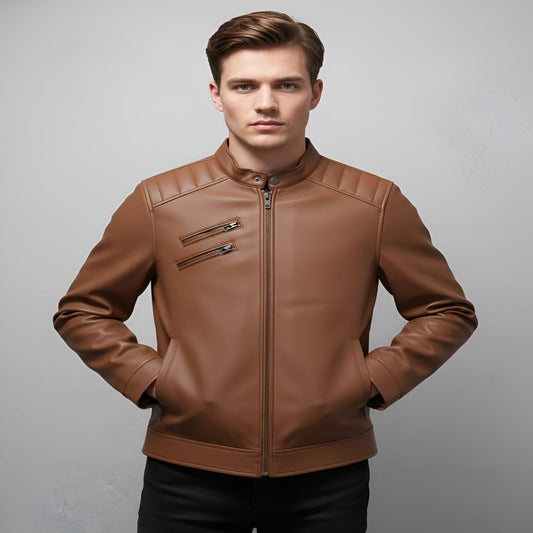 Men’s Classic Swiss Brown Leather Zipper Jacket
